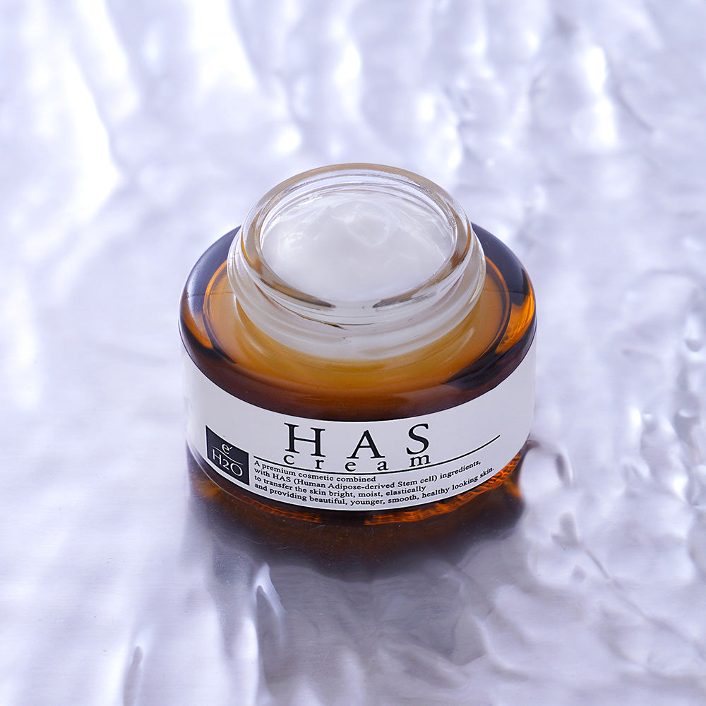 HASには幹細胞培養液だけでなくレスベラトール・β-グルカン・プラセンタ・トリプルコラーゲン・トリプルヒアルロン酸などエイジングケアには⽋かせない⾼級美容成分を余すことなく配合しております。様々な成分のアプローチにより環境の変化や年齢に負けない肌へ